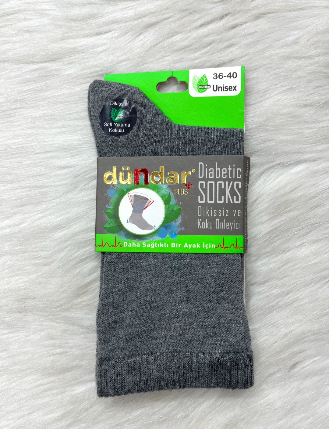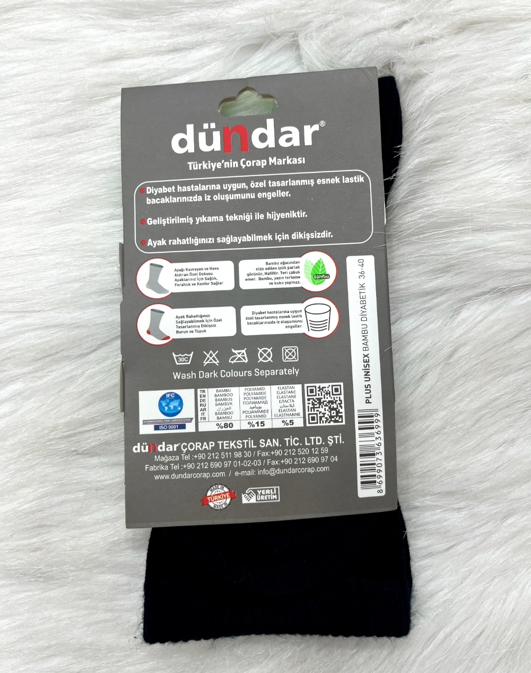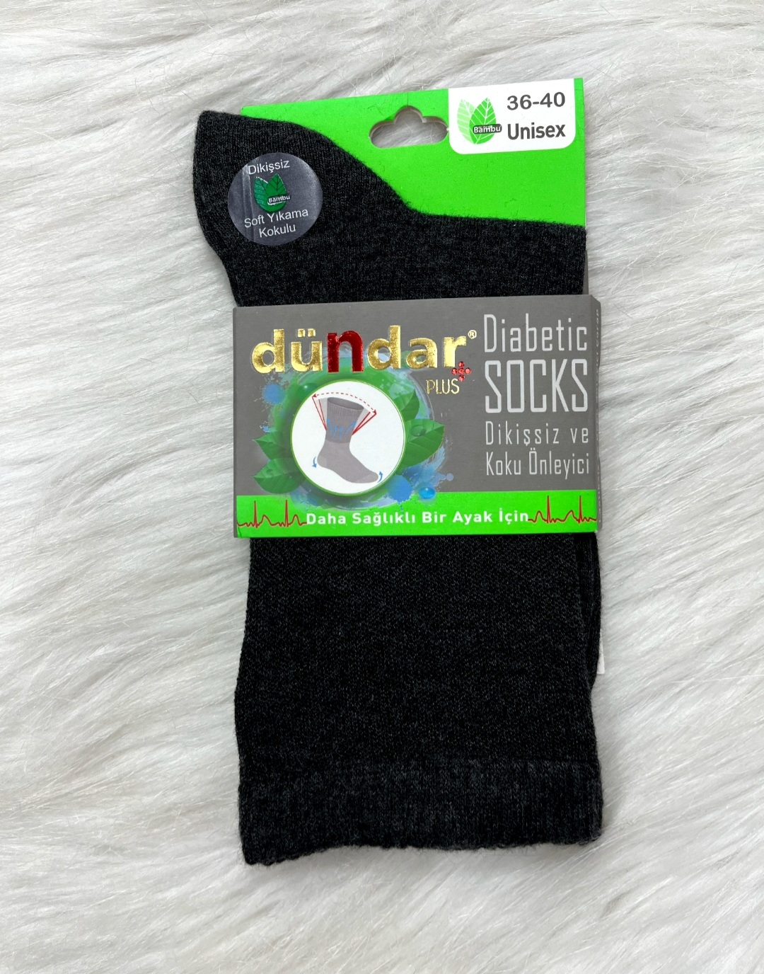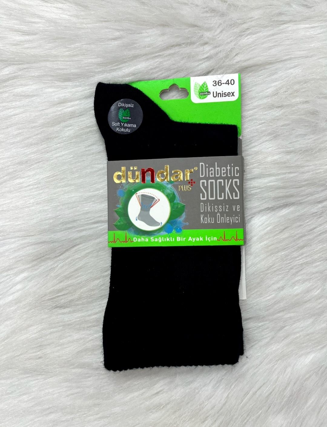 جوراب دیابتیک دوندار تهیه شده از الیاف بامبو است، طراحی این جوراب به گونهای است که با کنترل رطوبت و داشتن بافت ویژه هوارسان از بروز عفونت و زخم جلوگیری کرده و مانع از عرق کردن پا میشود، از ویژگیهای این جوراب میتوان به طراحی راحت، نداشتن دوخت،تنظیم رطوبت و جلوگیری از خشک شدن پا، خاصیت آنتی باکتریال و آنتی میکروبال، جلوگیری از بوی بد پا و فشار کمتر به کف ساق پا نسبت به جورابهای معمولی نام برد